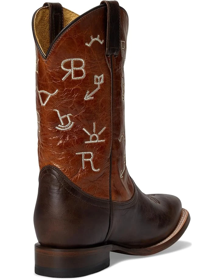 - Let your little one walk from the barn to the backyard wearing the Roper® Kids Brand. Crafted from leather upper, lining, and reboot removable insole, this pair of boots features square toe marbled brown leather vamp, embroidered brands on burnish tan leather shaft, block heel, double welt sole with nails, mid-calf silhouette, side pull tabs, and pull-on style.