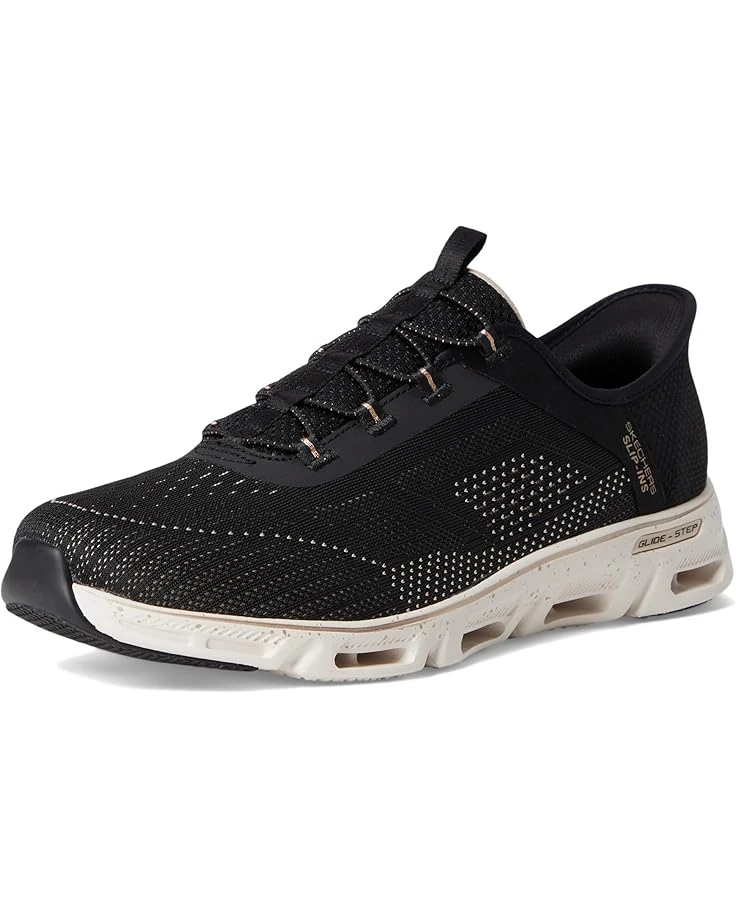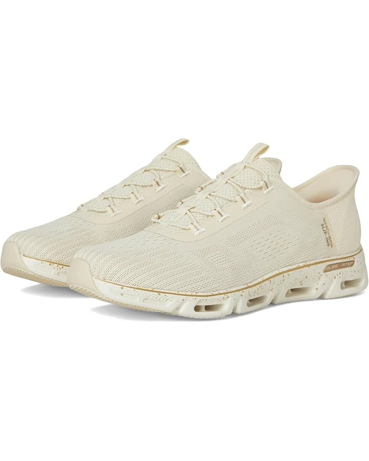 - Enjoy exceptional cushioning with the Skechers® Glide-Step Gratify Pace Hands Free Slip-Ins. Featuring an engineered mesh upper with a fixed stretch-laced front, this sneaker ensures a secure fit and breathability. The bungee lace slip-on design, complete with a Heel Pillow™, makes it easy to put on and take off.