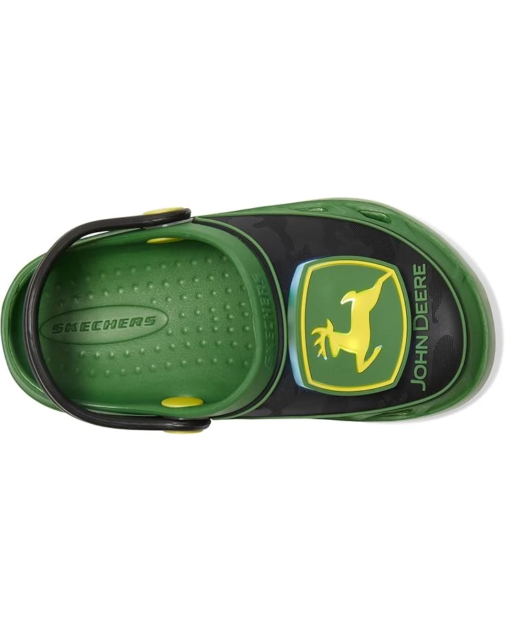 - Let your little explorer step into action with the SKECHERS® KIDS Skechers x John Deere: Swifters II – Leaper Brights 407073L-a bold fusion of farm fun and all-day comfort! Featuring an ultra-light EVA upper, insole, and outsole, these easy pull-on clogs are built for endless outdoor play. The iconic Leaping Deere logo lights up with every step, adding a touch of magic to every adventure. A contoured cushioned footbed ensures soft landings, while the convertible heel strap delivers a secure fit or slides back for a breezy slip-on style. With a flexible traction outsole for steady steps, these John Deere clogs are ready for fun on and off the farm!