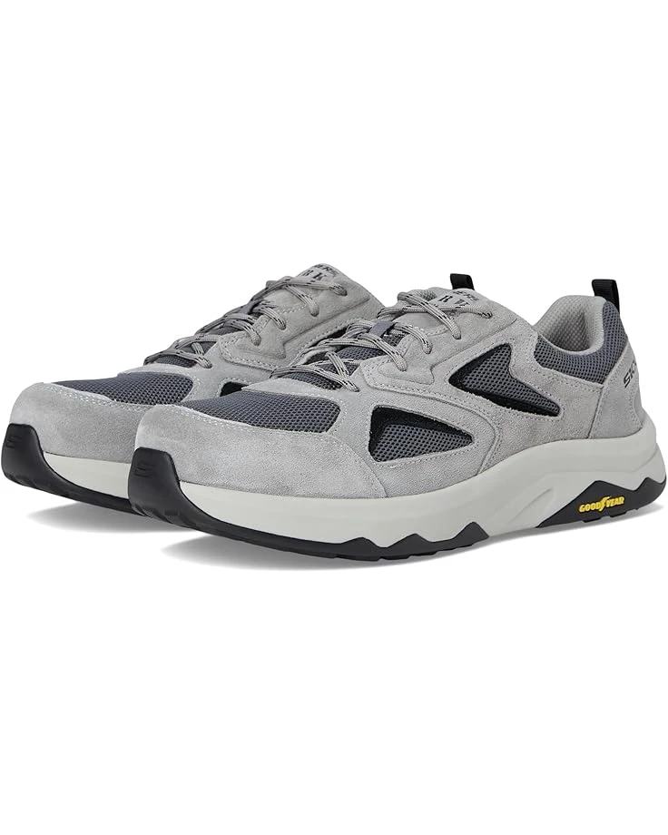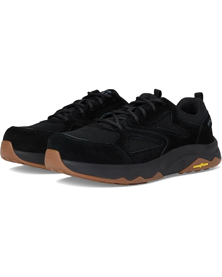 - Safety and style, seamlessly combined: Experience the SKECHERS® Work Speed – Flex Trekker – Teron Comp Toe. Designed for the modern worker, this rugged shoe combines a premium leather and mesh upper with a breathable mesh for durability and ventilation. Featuring a non-metallic composite safety toe and Goodyear® slip-resistant rubber outsole, your feet stay protected and steady on any terrain. The EVA insole and Air-Cooled Memory Foam® provide all-day cushioned comfort, while the polyester lining ensures a smooth fit. Lace-up closure offers a secure fit, making this the perfect footwear for demanding work environments.