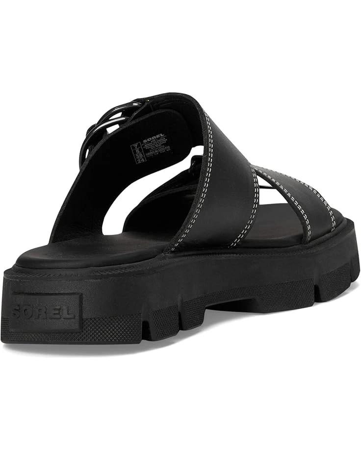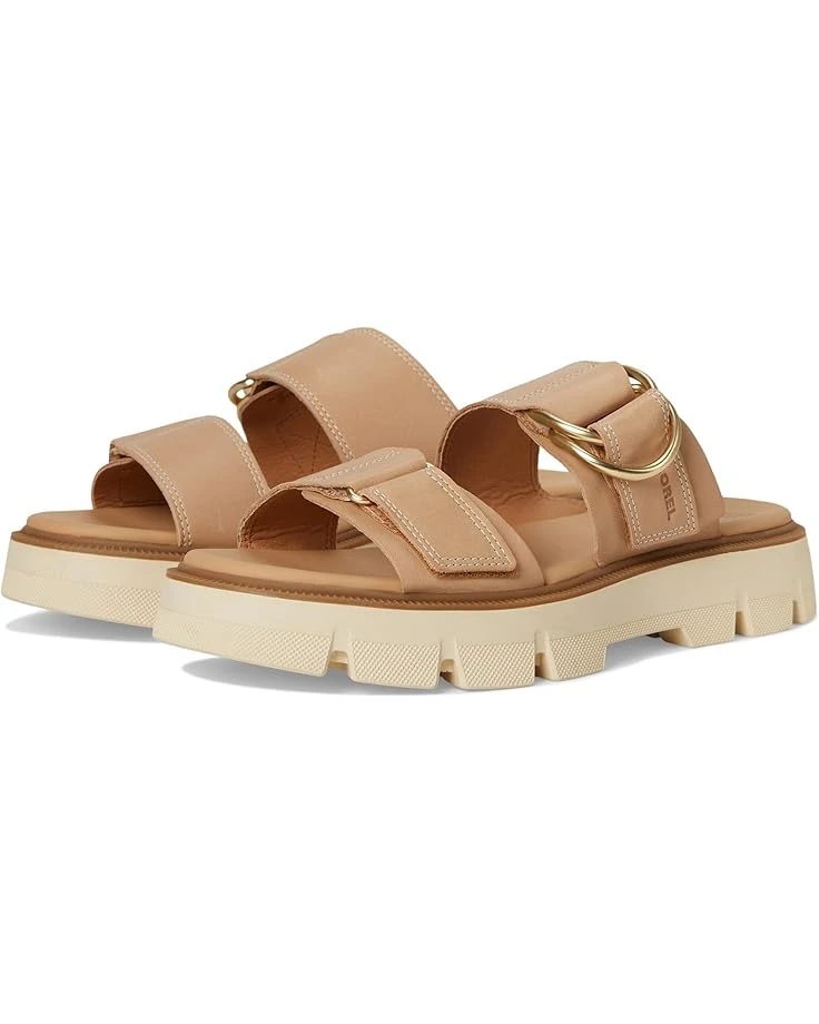 - This is a slide sandal that’s made to do more. More design details, more comfort, and more premium finishes. It’s the warm weather of the SOREL® Rein CB™ Slide Sandals. Crafted from full-grain leather upper with metal D-ring detail, synthetic lining, plush EVA foam footbed with synthetic topcover, molded FEATHERTREAD rubber with EVA drop-in midsole, and molded FEATHERTREAD rubber outsole.