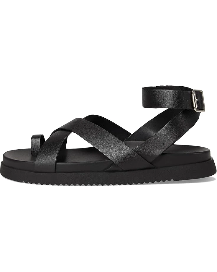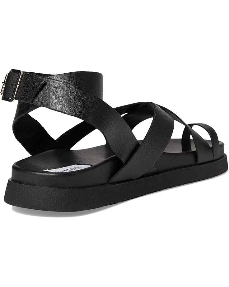 - Elevate your style with the Steve Madden® MIRA sandal. The sleek ankle strap and buckle closure provide secure and comfortable wear. These timeless sandals are perfect for any occasion, making them a versatile addition to your shoe collection. Featuring round toe, crisscross strap design, and brand detailing on the footbed.