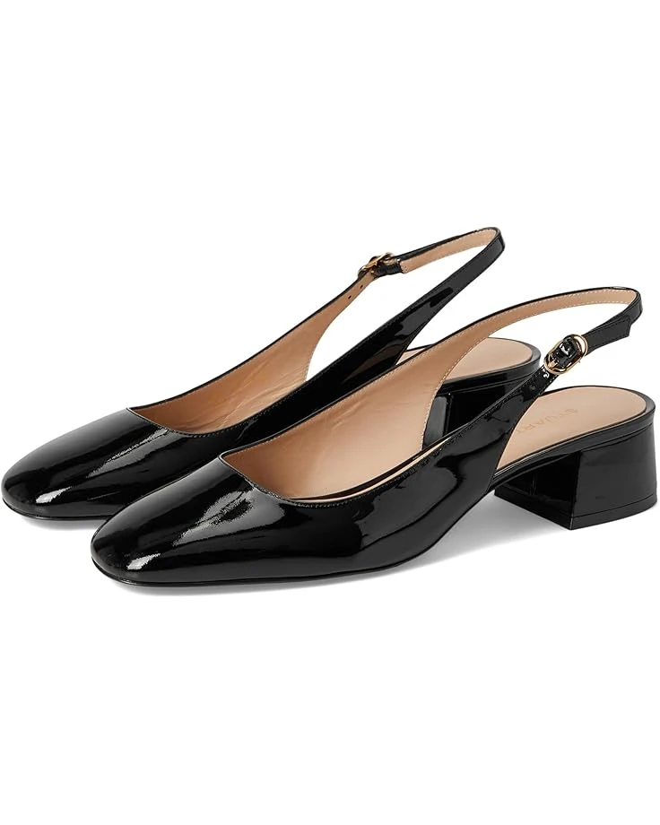 - Ideal for both professional and casual settings, the Stuart Weitzman® Maeve Slingback 35 is your go-to choice to exude everyday flair. Featuring a closed square toe, these low-top pumps boast a buckle adjustable slingback strap closure for a secure and customized fit, while the sturdy block heel provides all-day stability.