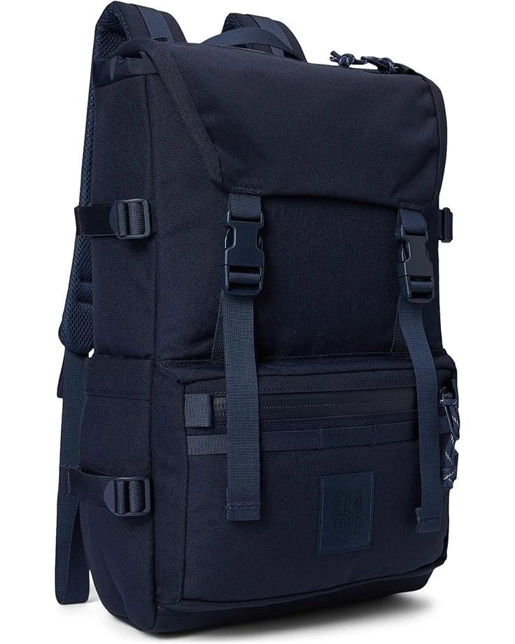 - The Topo Designs Rover Pack – Tech is made from tough 1000D nylon with a cinch top closure. An exterior front pocket and top flap pocket give quick access to smaller items and an external padded laptop sleeve holds your computer secure. A large internal sleeve can be used for notebooks, a laptop or other gear. Expandable side pockets hold your water bottle in place.