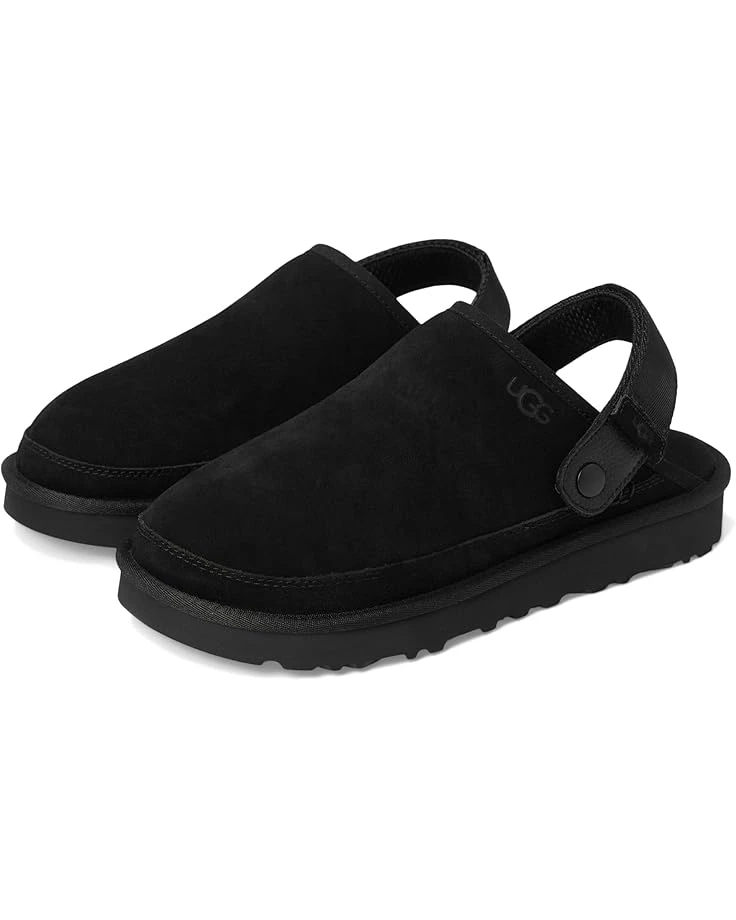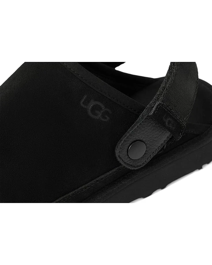 - The UGG® Goldencoast Clog II is tough on cold, soft on feet. It features a smoother footbed and new adjustable back strap that can be slung over the front for even more wearing opportunities. Slip into the lightweight comfort of renewable sugarcane EVA, genuine suede, and a soft microfiber lining from recycled fibers. It comes with microfiber binding, metal hardware, hook-and-loop closure, microfiber sockliner, foam footbed, and UGG® logo, heat-embossed.