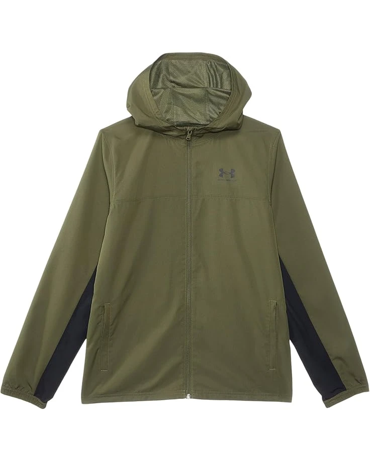 - Let your little one elevate the cool look wearing the Under Armour® Kids Rival Woven Jacket. Featuring hooded neckline, long sleeves, zippered front closure, two front hand pockets, and brand logo on the left chest.