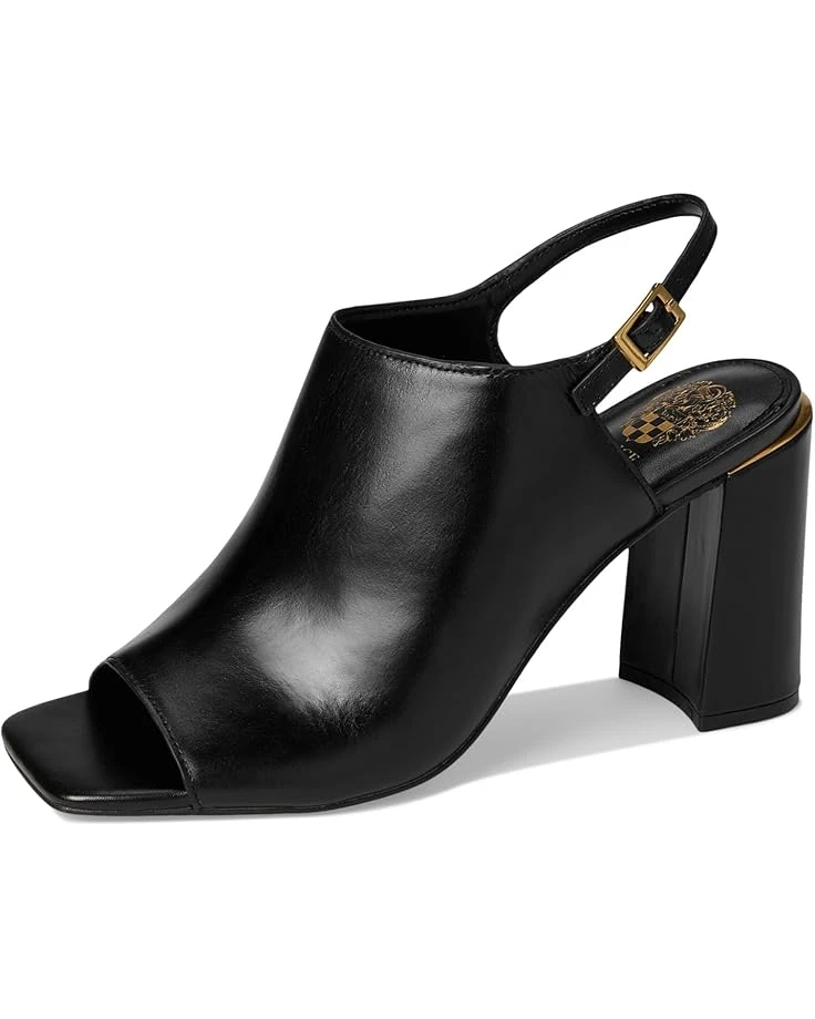 - Introducing the Vince Camuto® Haliza Peep Toe Block Heel Sandal, featuring a chic sheath upper and a delicate adjustable sling strap with a stylish buckle. The thick block heel is available in either leather-covered or stacked options, accentuated by a demure metal heel rand. With its sleek and minimal styling, this sandal effortlessly elevates any outfit. Perfect for both casual outings and special occasions, the Haliza combines comfort and sophistication in one stunning design.