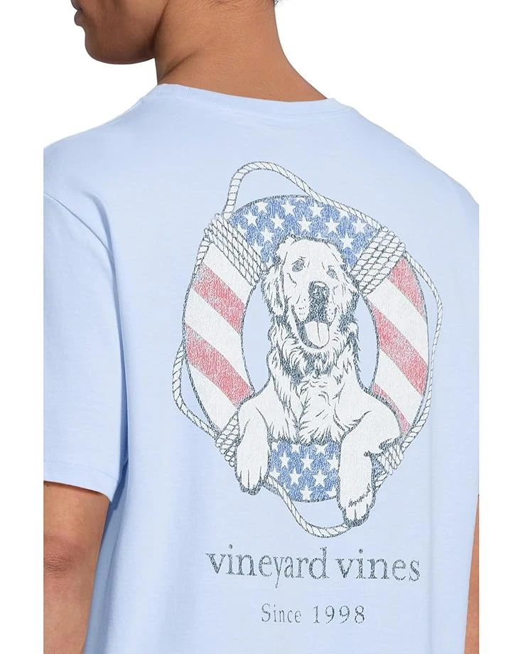 - Get the best of both comfort and style wearing Vineyard Vines® Usa Dog Life Ring Ss T. The pull-on style soft-washed durable cotton tee features a crew neck, short sleeves, a patch pocket on the left chest with logo detail, a quirky back print, and a straight hem.