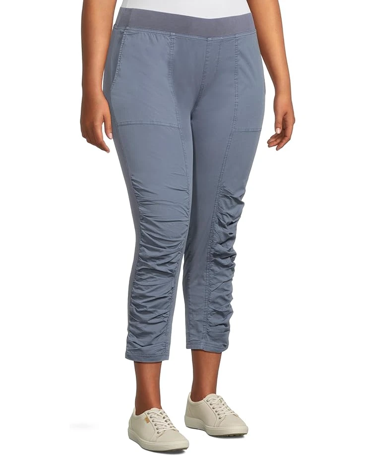 - The XCVIâ„¢ Geyser Crop features two front pockets, along with the classic elastic pull-on waistband, ruching on leg front, and jersey side inserts for an impeccable fit. This mid-rise bottomwear features a faux fly construction and slim fit silhouette.